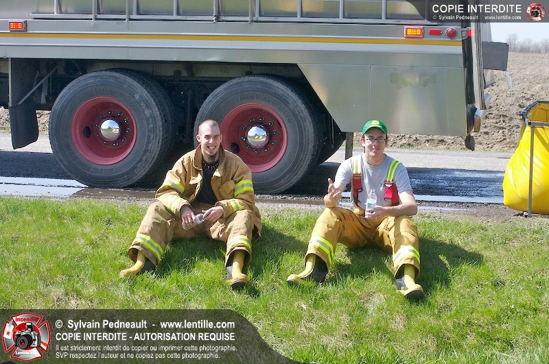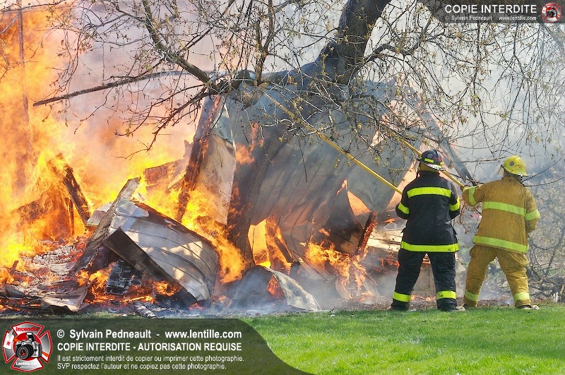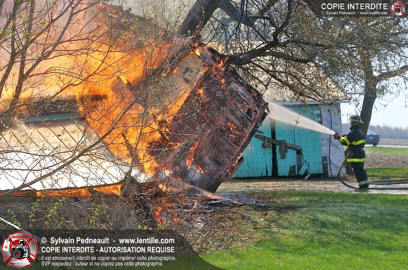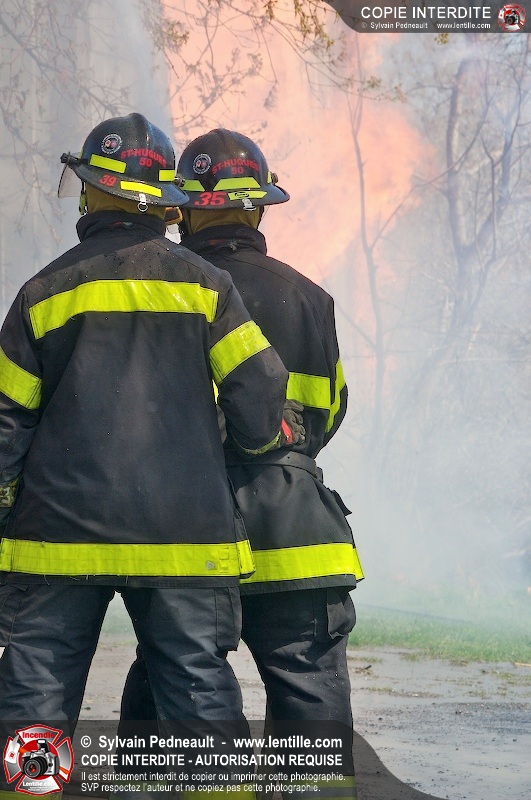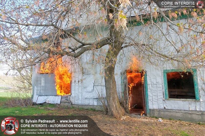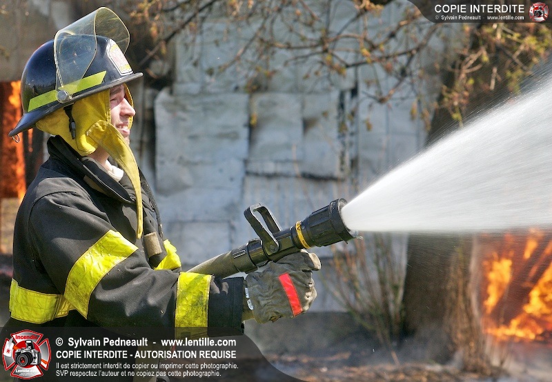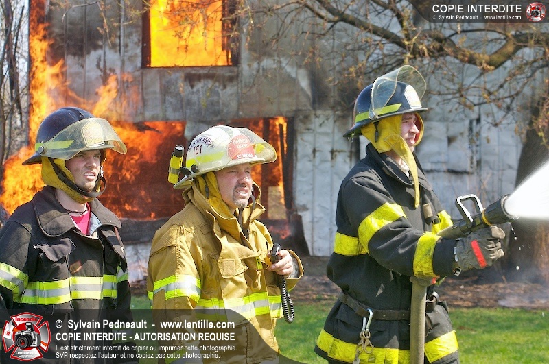 Les pompiers de St-Hugues ont participé à une pratique d'incendie avec un bâtiment désaffecté.