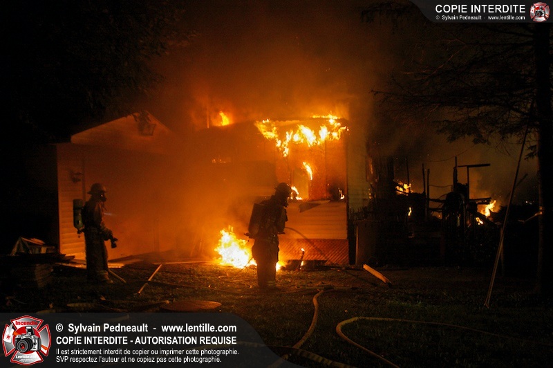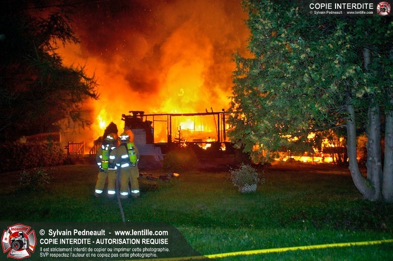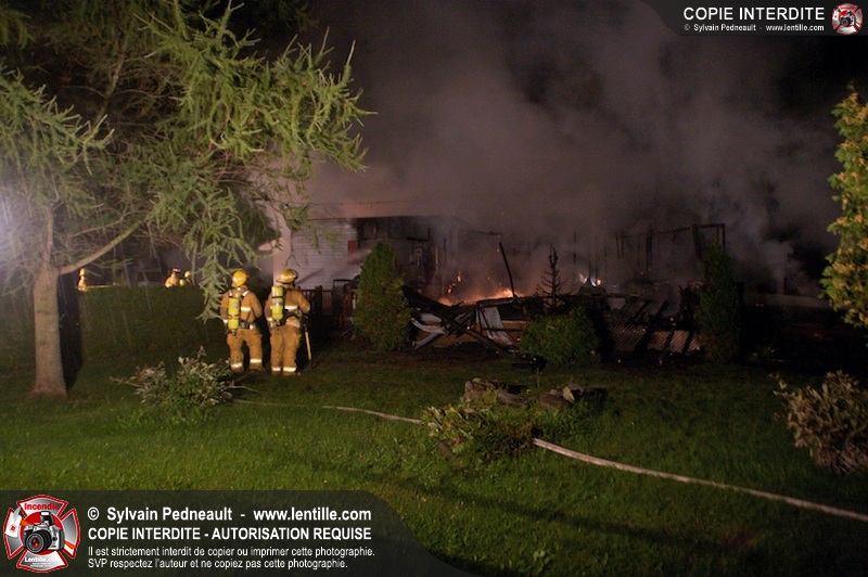 Un incendie a complètement détruit une maison mobile sur la rue des Cèdres à St-Pie. Avant même l'arrivée sur les lieux de la première unité, un 10-07 a été donné puisque l'incendie était visible à bonne distance.