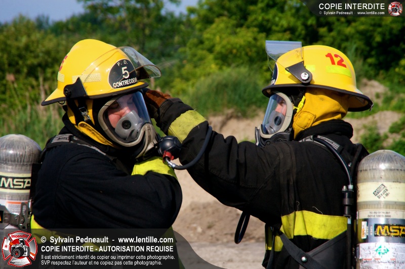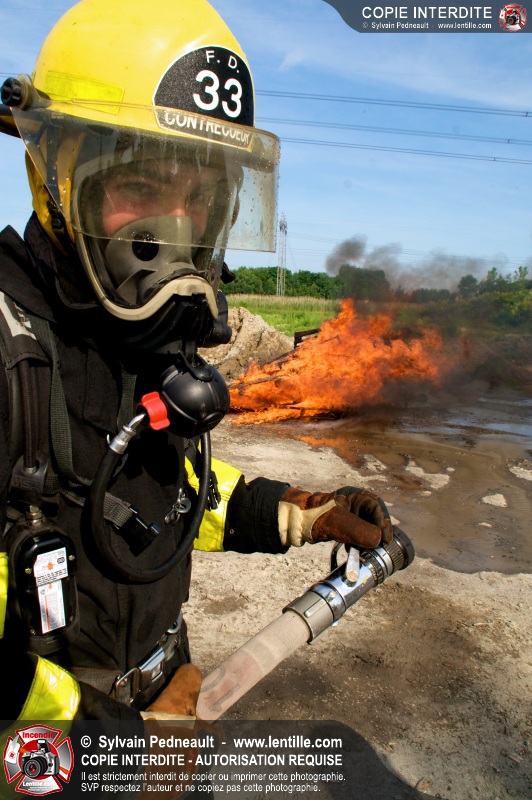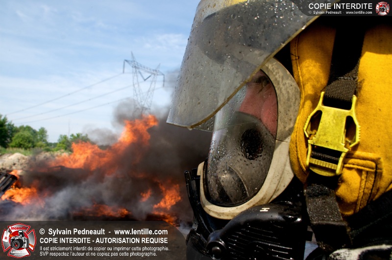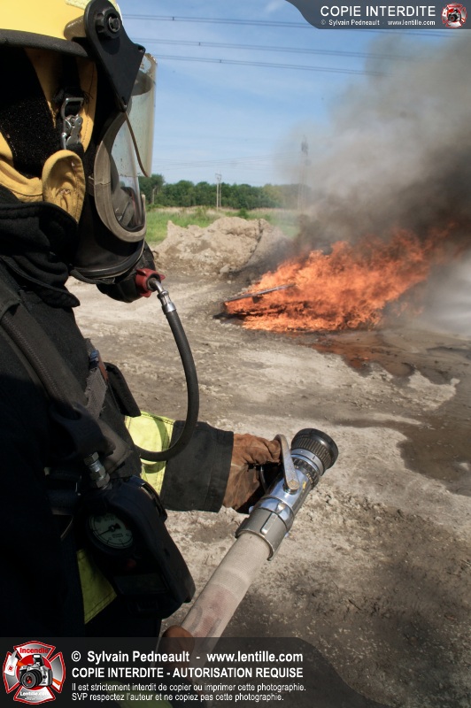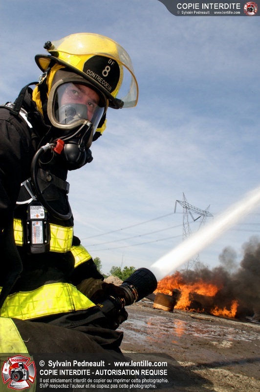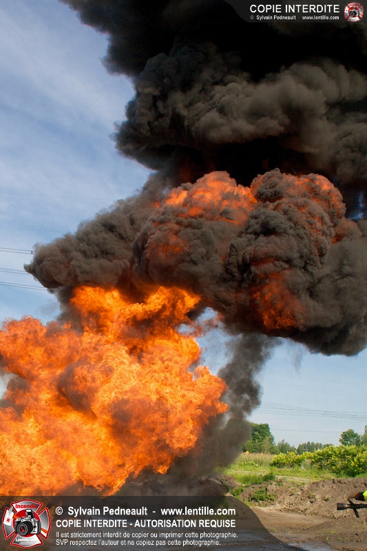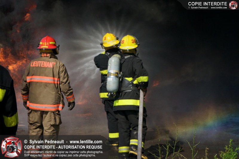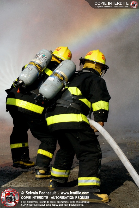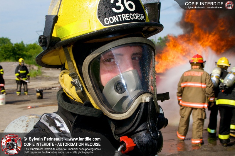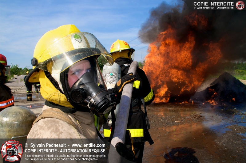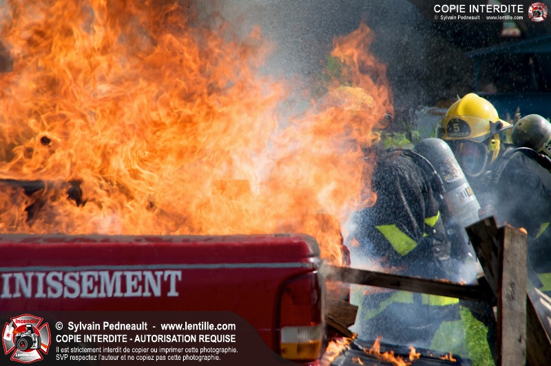 Des pompiers en formation à Contrecoeur ont participé à une pratique d'incendie. Des palettes de bois et un véhicule ont été utilisés pour permettre aux étudiants de pratiquer différentes manoeuvres d'intervention.